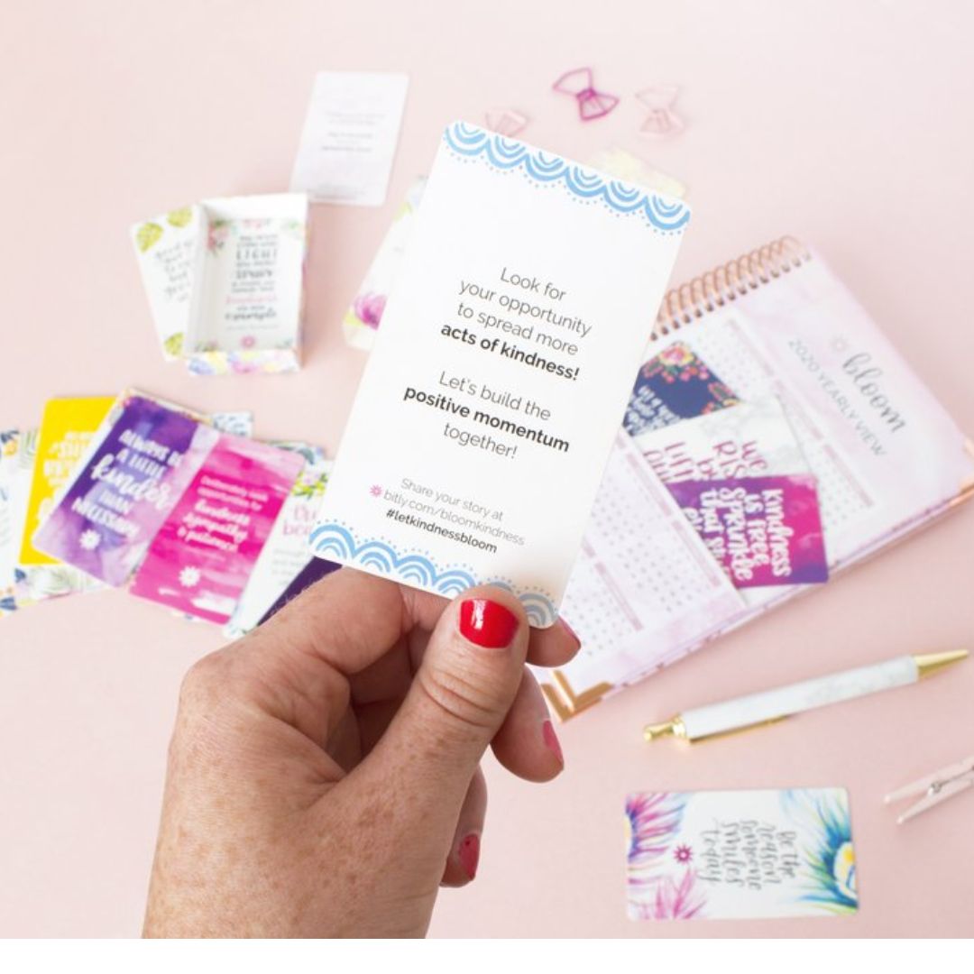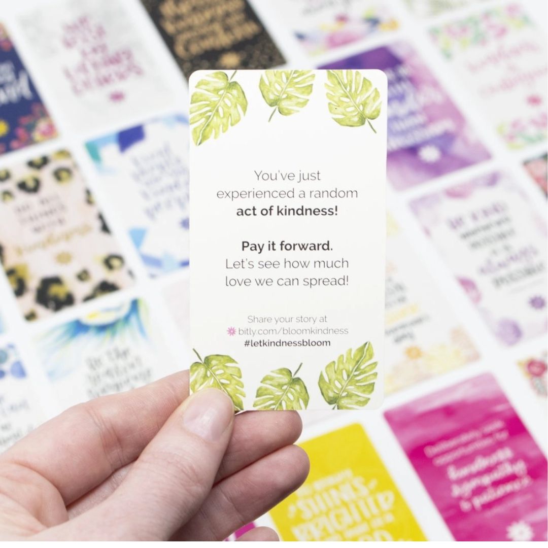 • Back of cards have a pre-written message about acts of kindness and paying it forward