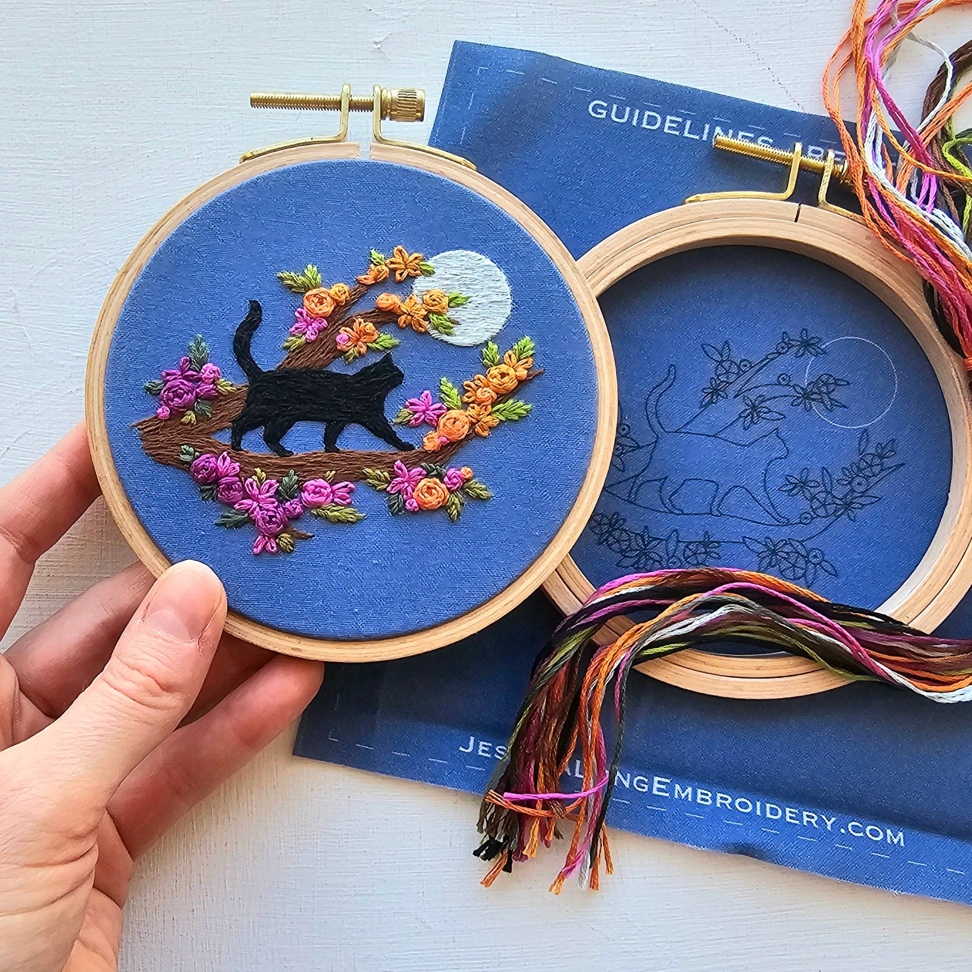 The best selling Catwalk Embroidery Kit is now available in a mini size! This bite sized 4 inch hoop project stitches up quickly and makes a thoughtful handmade gift. The "Catwalk" embroidery kit includes everything you need to complete this fun fall project, from beginner-friendly instructions and an online video tutorial, to quality stitching supplies.