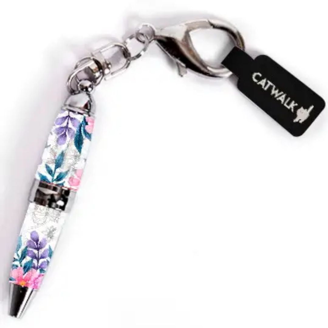 Blue, Purple and Pink Flowers and Leaves Mini Keyring Pen: Charming and Colourful